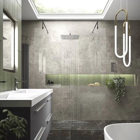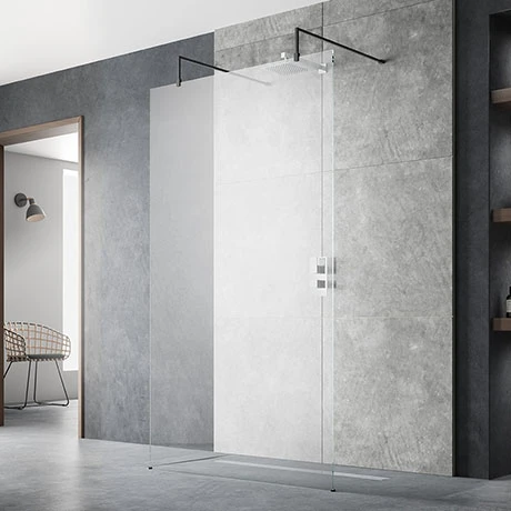 The stylish Hudson Reed free standing wet room screen with black double support arms, great for a creating a fuss free minimalist luxury showering area in your bathroom. Screen has been manufactured from high grade 8mm thick clear toughened glass and comes with 2 fixed wall mounted black support arms and floor mounted retainer feet.