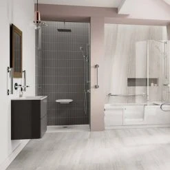 - Bi-parting doors hinging from the wall & fixed panel for ease of use.