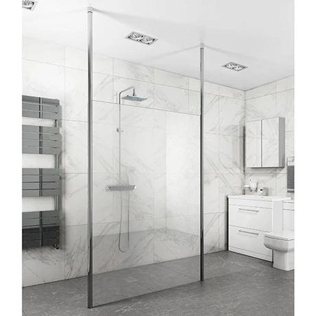 The stylish Toronto 8mm plain glass dual pole walk-through, great for a creating a fuss free minimalist luxury showering area in your bathroom.